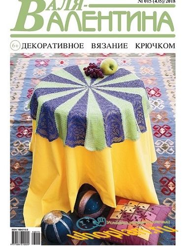 Популярный журнал по декоративному вязанию крючком. В этом выпуске журнала «Валя-Валентина» - салфетки, которые обязательно захочется выполнить и определить им своё место в доме. Обращаем особое внимание на необычную скатерть выполненную из двух цветов, но на которой предстоит потрудиться. Ведь она вяжется сразу на 20 клубочках. У каждой хозяйки обязательно найдутся лоскуты ткани, которые не хочется выбрасывать. Предлагаем выполнить из них прекрасные салфетки. И для любителей вышивки крестиком новые цветные схемы «Букет», «Бабочка», «Потанцуем».